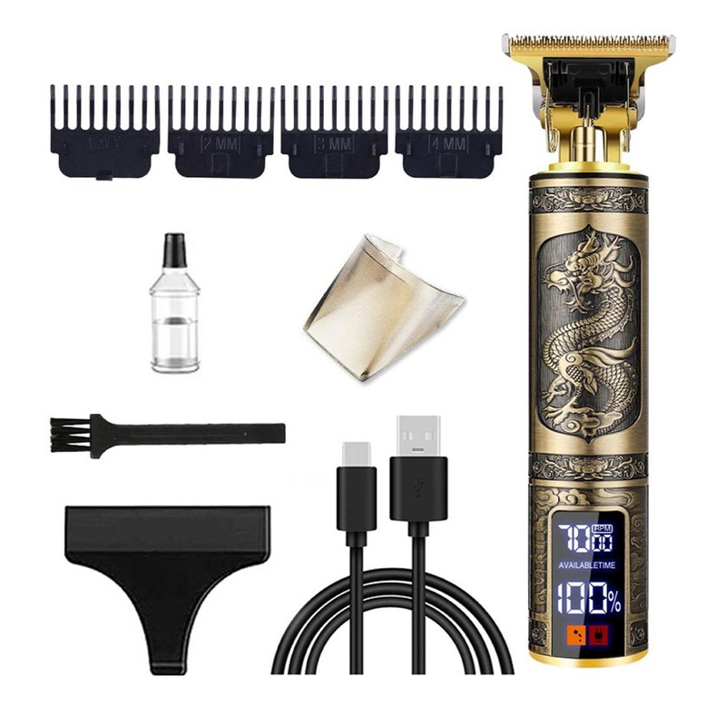 Lieferumfang: 1 * Trimmer, 1 * USB-Kabel, 1 * Reinigungsbürste, 4 * Führungskämme, 1 * Schmieröl, 1 * Klingenabdeckung, 1 * Staubschutzhülle, 1 * Benutzerhandbuch
