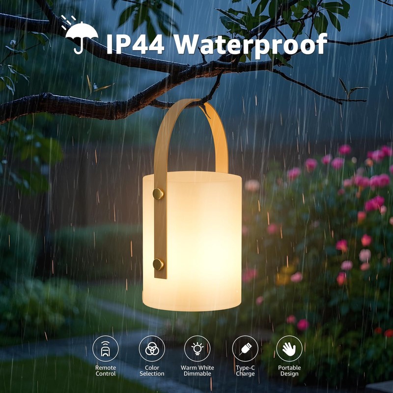 uuffoo Outdoor Cordless Table Lamp LED Lantern Shower Lamp, Dimmable RGB and Warm White for Patio, Camping, Restaurant, Bathroom