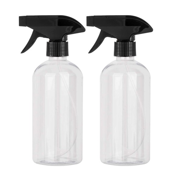 UUJOLY 17 oz Plastic Spray Bottle Trigger Empty Spray Bottles Clear Refillable Container for Water, Essential Oils, Hair, Cleaning Products, Adjustable Head Sprayer and Stream, Clear, 2 Pack