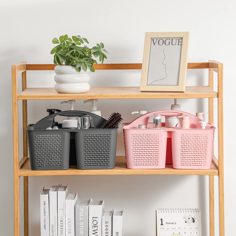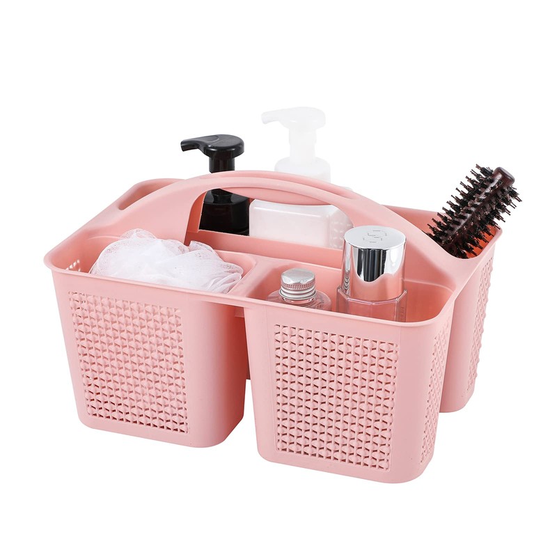 UUJOLY Plastic Portable Shower Caddy Basket Bucket, Cleaning Shower Basket with Handle Compartments Storage Basket Organizer for Bathroom Kitchen College Dorm Sink, Pink