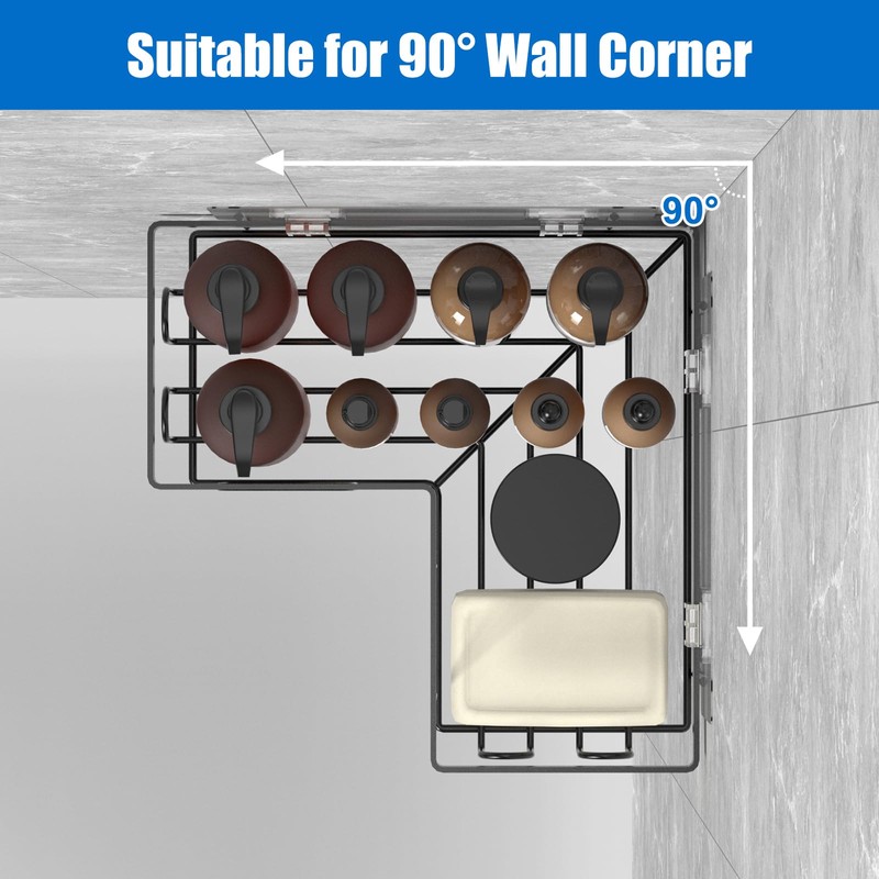 - 【Wide Application】 This black shower caddy can be used separately on different occasions. The corner shower shelf in the bathroom can hold your various bath supplies. In the kitchen, it also can be used as a spice rack. Also, you can hold your detergent and fabric softener in the laundry room.