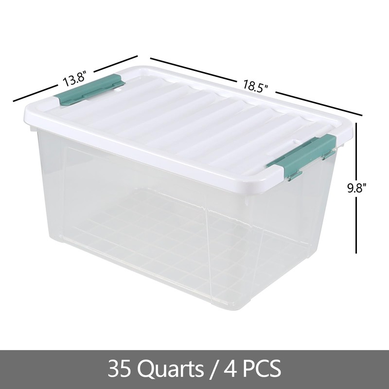 Uumitty 4 Packs 35 Quart Storage Bins with Lids, Stackable Storage Containers for Organizing, Clear