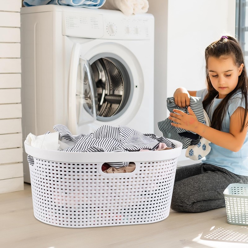 - A large capacity laundry basket can hold a family's clothes and can be nested when not in use to save space
