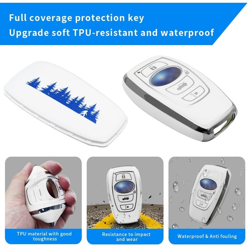 uunonaha Key Fob Cover TPU 360 Degree Protection Soft Full Protection Case Compatible with Ascent BRZ Crosstrek Forester Impreza Legacy Outback WRX STI Smart Key (S5, White)