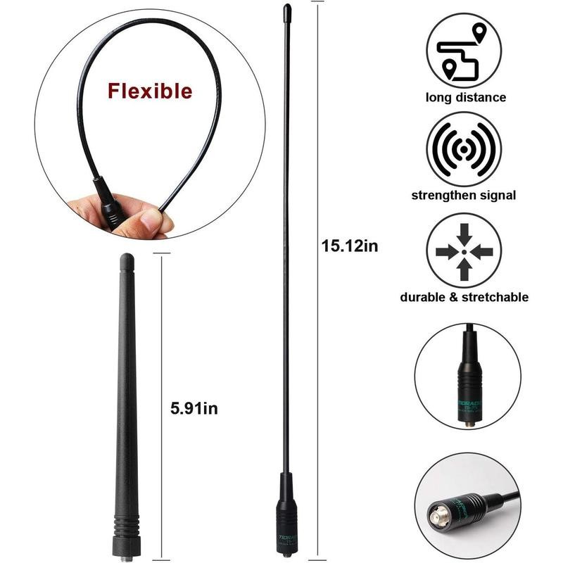 - [High Gain Long Antenna] This bundle comes with an extra antenna. Adding a TD-771 high gain antenna on your ham radio can greatly expands the signal transmission distance and enhances signal reception. This also helps you to hit the repeater further away to reach a longer communication distance.