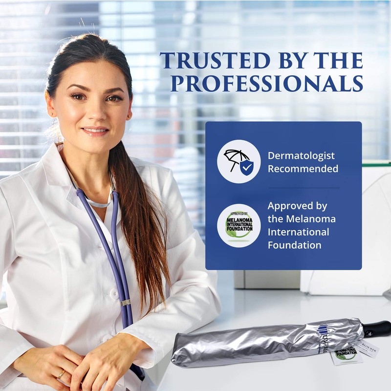 • We're A Brand You Can Trust: UV-Blocker is Dermatologist Recommended and Approved by the Melanoma International Foundation; Choose from 3 sizes: Compact (42 inches), Travel (44 inches), and Large Folder (58 inches); Each one backed by our 1 Year Replacement Warranty