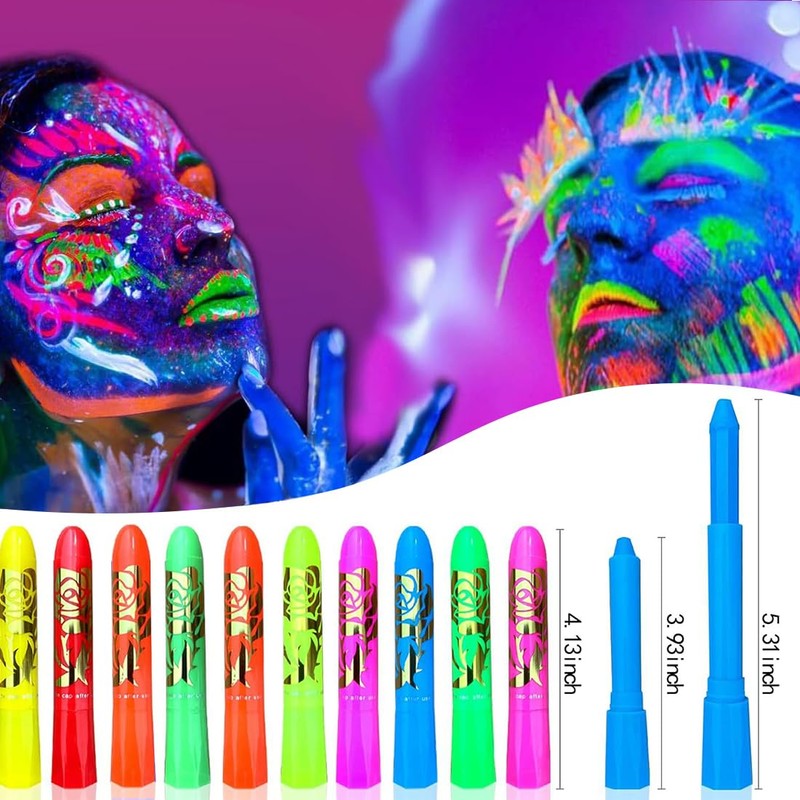 UV Body Painting, 10 Colours, Neon UV Children's Make-Up Set, Washable Make-Up Pens, Face Paint Make-Up Set, Body Colour, Children's UV Colouring Pencils for Halloween, Carnival Make-Up Fancy Dress