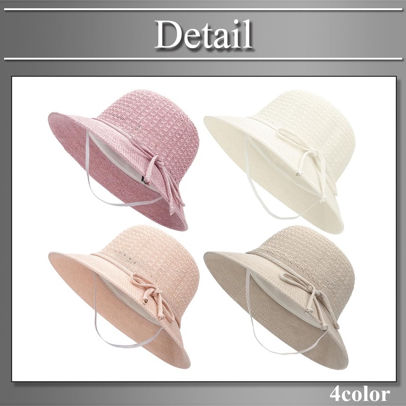 - 夏のお出かけに最適なレディース用サンハットです。細やかな編み込みデザインに、サイドの細いリボンがさりげないアクセントを加え、女性らしい優雅さを演出します。夏の強い日差しや紫外線からしっかり保護し、通気性に優れた構造で、長時間の使用でも快適さを保ちます。