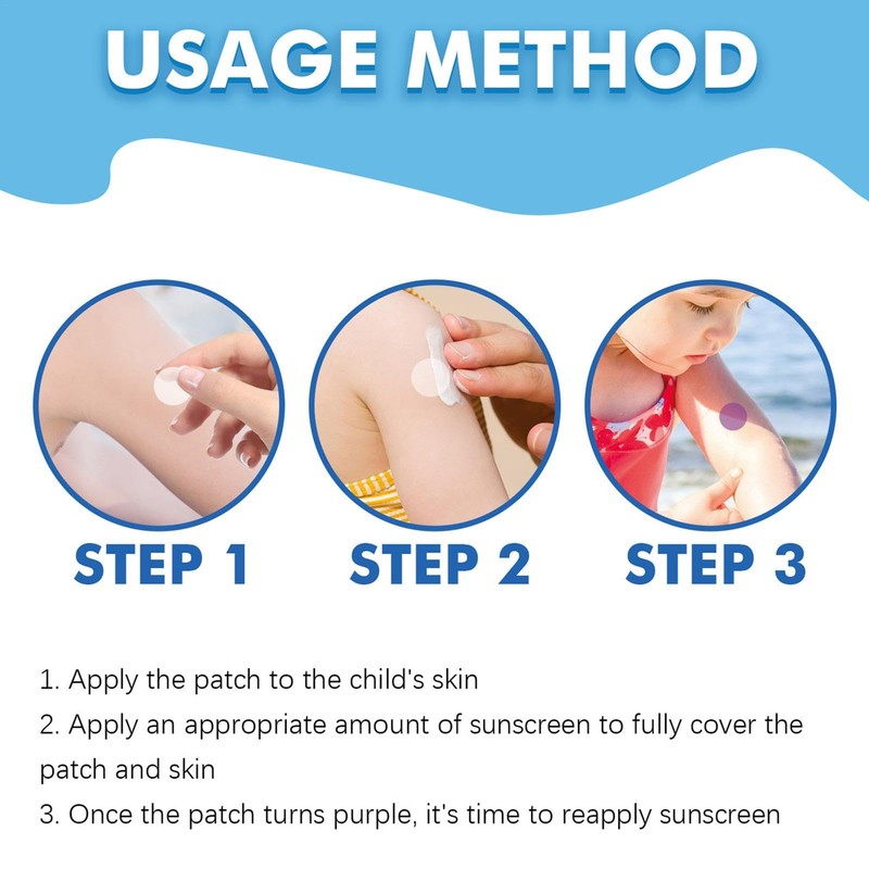 • ➧Sun Shield Indicator: With each application, the patch darkens to purple, signaling need for more sunscreen; as it fades, it reminds you to reapply for continuous protection.