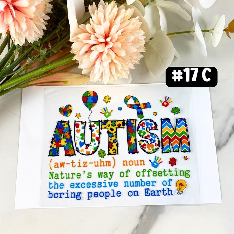 UV DTF DECALS, 4" height, Cup Decals, Cup Stickers, Cup Decor:_#17C - Autism