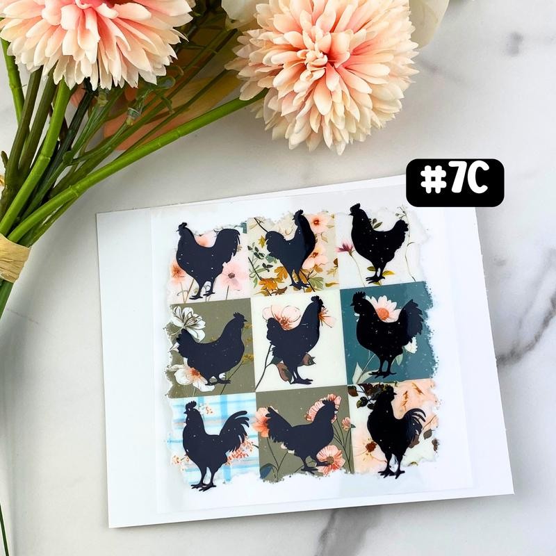 UV DTF DECALS, 4" height, Cup Decals, Cup Stickers, Cup Decor:_#7C - Chickens