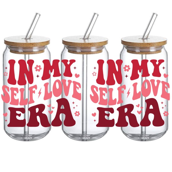 UV DTF Glass Cup Wrap Transfer Decal -3PCS ' in My Self Love Era ' Craft Transfers, Waterproof Decal for 16oz Glass Cups, Furniture, and Wood - Ceramic Mug DIY Crafts