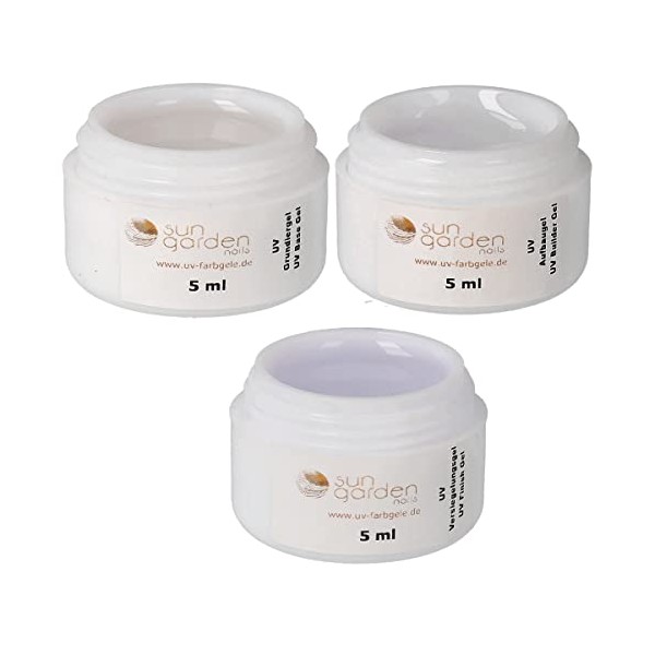 UV Gel Set 3 x 5ml - Grundiergel, Aufbaugel, Versiegelungsgel