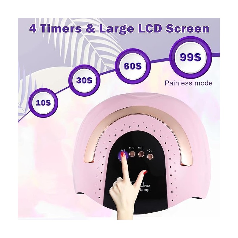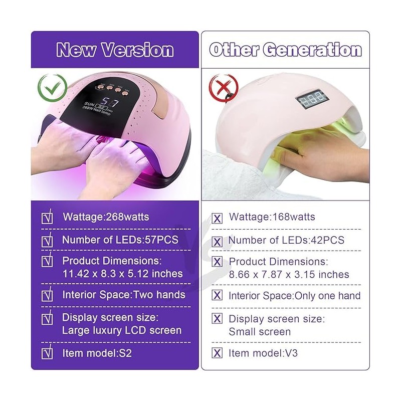 • 【Upgraded Dual Light Source & Fast Curing Nail】Our professional nail polish curing machine featured the highest configuration UV light technology. 268W high power will curing nail gel polish faster. 57 UV+LED lights are scattered evenly on the top and sides of the lamp. So your nails will be cured quickly and properly