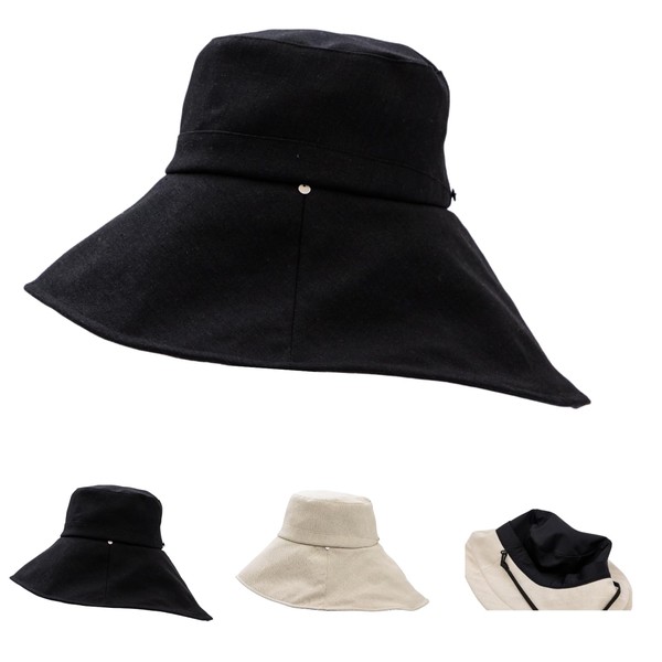 UV Light Shielding Women's Hat, 100 % Cool, Wide Brim, Chin Strap, Parasol, Moon Bat, Adjustable Size, 65296 Train Hat, Black