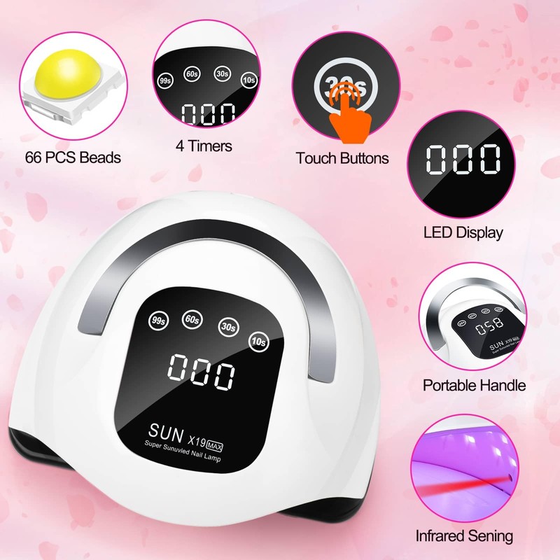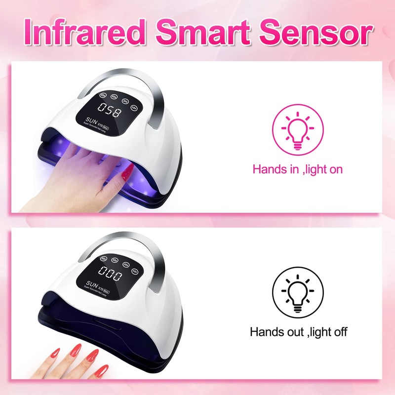 - [4 Timing Settings and Smart Sensor]: The uv light for gel nails has 4 timing Settings of 10s/30s/60s/99s to choose from according to your DIY needs and different nail polish types. UV lamp for gel nails has an automatic sensor, without pressing the button, Hands in turns light on, Hands out turn light off.