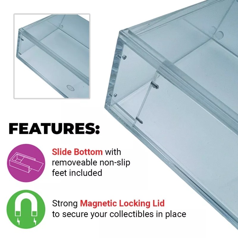 High quality FiGPiN XL Hard Acrylic Boxes with a slide bottom tight fit lid. These are made with super sturdy 4mm thick acrylic and are by far the thickest on the market. Pop stacks are only 2mm thick plastic to give some perspective. These are all made specifically for us with our Shell Logo embossed on the slider so we can inspect the each unit and make sure to offer the highest quality available on the market. All cases come with the following:
