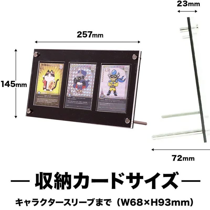 - [Features] 1. This display stand is made of colored acrylic. 2. The first acrylic is made of UV resistant acrylic, which is lightfast and protects your valuable cards from fading. 3. You can choose from 2 colors to match your card. 4. The cutouts for a set of 3 cards, so the cards don't slide around. 5. The 3-layer construction has a heavy design and is made in Japan. You can freely change the length and width by replacing the screw