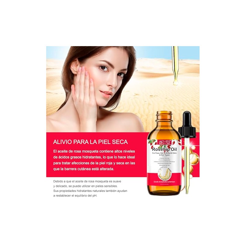 UVA NATURAL Aceite de Rosa Mosqueta 60 ml Previene Arrugas Cicatrices y Estras Regenera y Reafirma la Piel Cierra los Poros Reduce Manchas...
