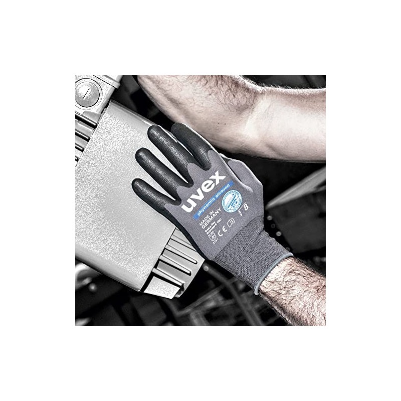 The uvex Phynomic Allround has been designed as a universal protective glove for mechanical activities and offers excellent grip safety in both dry and slightly damp areas thanks to its aqua-polymer foam coating. Thus, it is perfect for precision work, use in logistics and packaging as well as at home and for craftsmen.