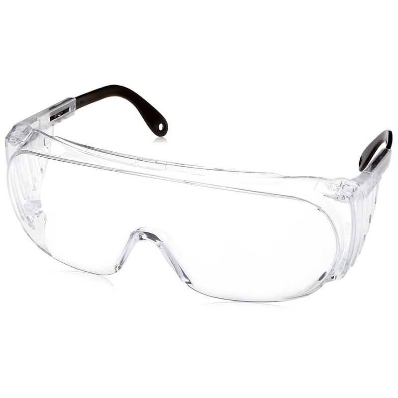 - SAFETY & COMFORT: Wraparound uni-lens design and built-in side shields protect against flying debris, splashes, airborne droplets etc.; side shields feature venting for better airflow and comfort; adjustable temple length ensures comfortable, custom fit