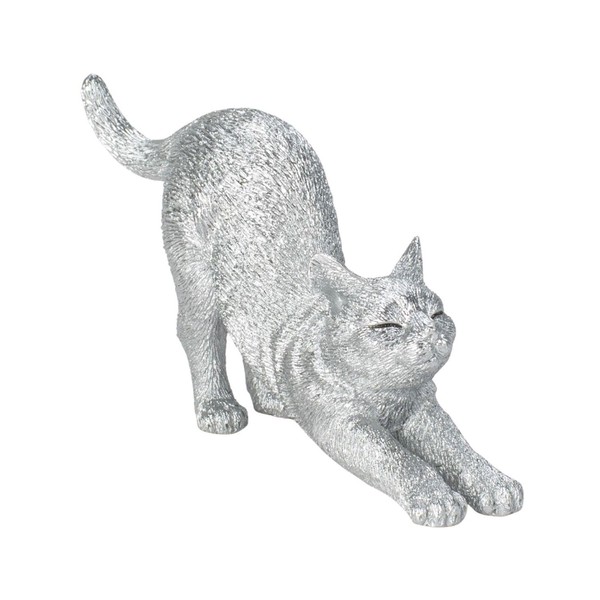 Uvia Metal Pet Stretch Cat Silver 3.3 x 0.8 x 1.8 inches (8.5 x 2 x 4.5 cm) Doll Figurine Figurine Animal Garden Decoration Cat H24018-J13