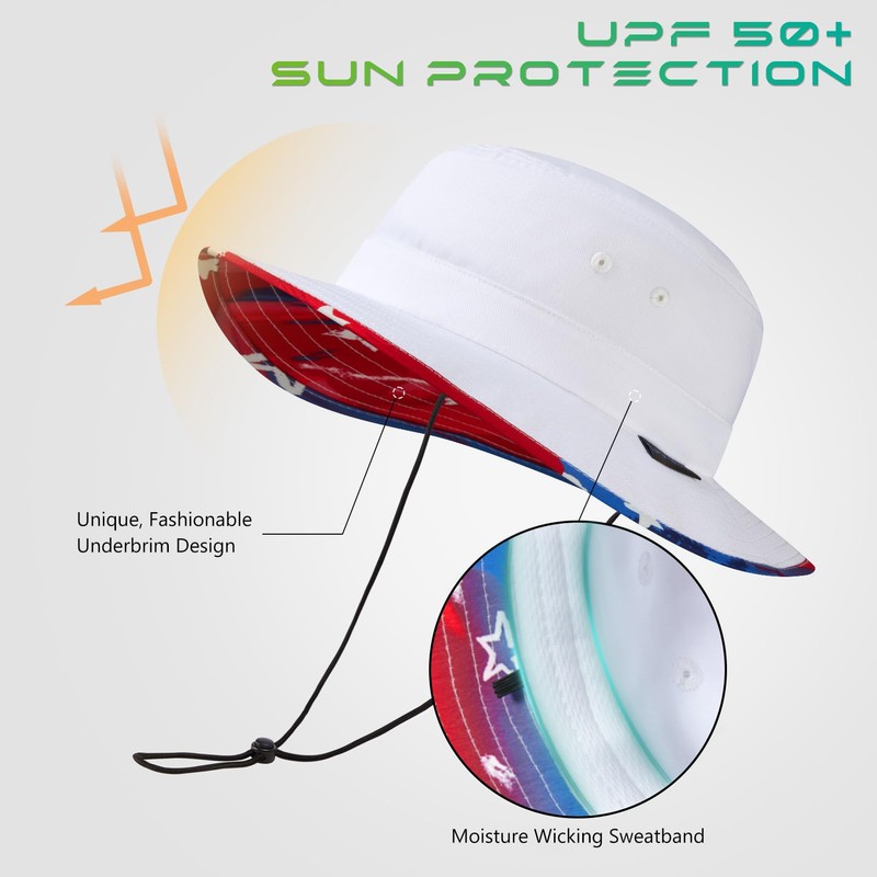With UPF 50+ rating, breathable fabric, premium construction, and patterned under brim, this bucket sun hat will deliver performance, comfort and style. It is perfect to wear while you enjoy hiking, riding, fishing, gardening, etc. Get ready to have some fun in the sun!