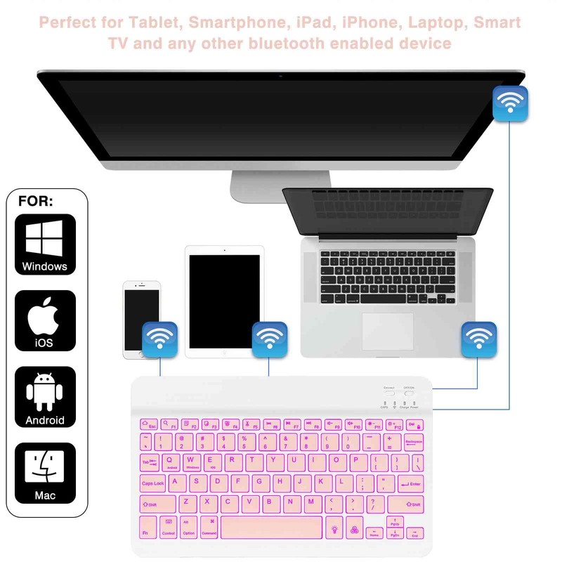 - CONNECTION WITH MULTIPLE DEVICES & STABLE BLUETOOTH 5.1 — The built-in Bluetooth 5.1 technology allows the Bluetooth keyboard to easily move between devices while pairing, keeping your desktop clutter-free.Compatible with Acer Chromebook Tab 10, iPad,iPhone,iMac,MacBook,Laptop,PC,Tablets, Smartphone, Windows, IOS, Mac OS, and Android because it recognizes the system of your device and maps keys,automatically connects to your previously connected and supports all major operating systems.
