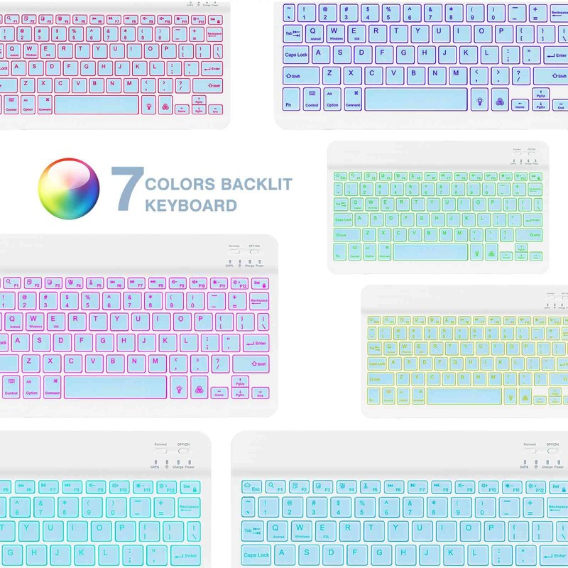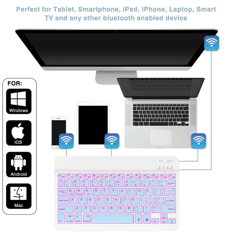 • CONNECTION WITH MULTIPLE DEVICES & STABLE BLUETOOTH 5.1 — The built-in Bluetooth 5.1 technology allows the Bluetooth keyboard to easily move between devices while pairing, keeping your desktop clutter-free.Compatible with Acer Chromebook Tab 10, iPad,iPhone,iMac,MacBook,Laptop,PC,Tablets, Smartphone, Windows, IOS, Mac OS, and Android because it recognizes the system of your device and maps keys,automatically connects to your previously connected and supports all major operating systems.