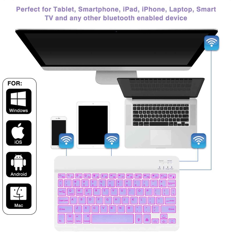 - CONNECTION WITH MULTIPLE DEVICES & STABLE BLUETOOTH 5.1 — The built-in Bluetooth 5.1 technology allows the Bluetooth keyboard to easily move between devices while pairing, keeping your desktop clutter-free.Compatible with Acer Chromebook Tab 10, iPad,iPhone,iMac,MacBook,Laptop,PC,Tablets, Smartphone, Windows, IOS, Mac OS, and Android because it recognizes the system of your device and maps keys,automatically connects to your previously connected and supports all major operating systems.