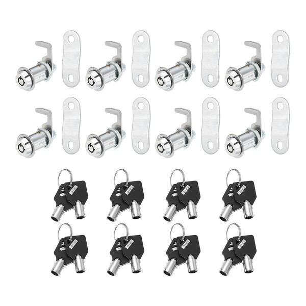 uxcell 1-1/8 Inch Cabinet Locks with Key, 8 Pack Cam Replacement Lock Cylinder Toolbox Lock Keyed Alike for RV Drawer Storage Cart Mailbox Compartment Door Tool Lock, Silver