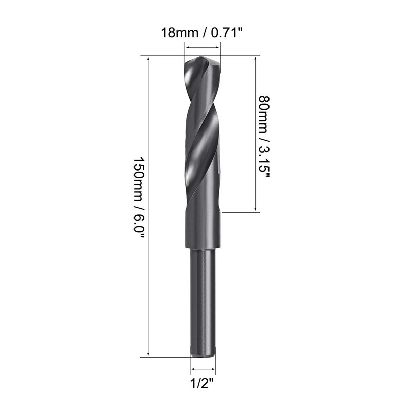 uxcell 1/2" Reduced Shank Drill Bits 18mm Black Nitride Coated High Speed Steel HSS 6542, Twist Drill Bit for Stainless Steel Alloy Metal Plastic
