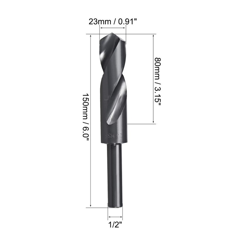 uxcell 1/2" Reduced Shank Drill Bits 23mm Black Nitride Coated High Speed Steel HSS 6542, Twist Drill Bit for Stainless Steel Alloy Metal Plastic