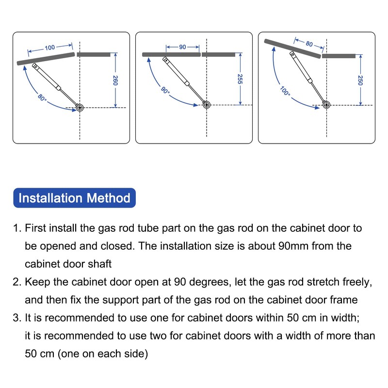 • [Tips] Different load-bearing specifications are suitable for different. 40N/50N is suitable for lighter doors, such as picture frames and electric meter boxes; 80N/100N is suitable for kitchen cabinet doors; 120N/150N is suitable for heavier ones, such as tatami