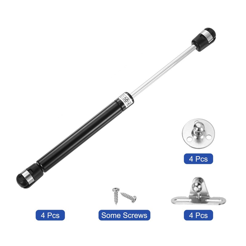 4 Pcs Gas Shocks Struts, 4 Rectangular Fixing Plates, 4 Round Fixing Plates and some Screws