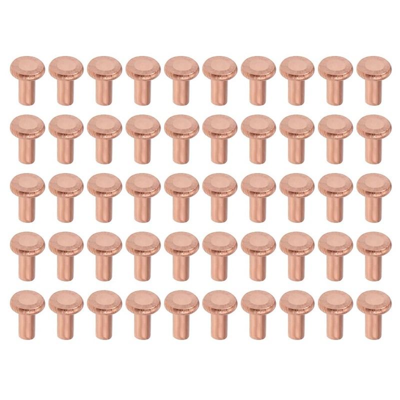 uxcell 100Pcs Copper Solid Rivets, 1/8" x 15/64" Flat Head Rivet Metal Fasteners for Electrical Applications, Leather Working Supplies