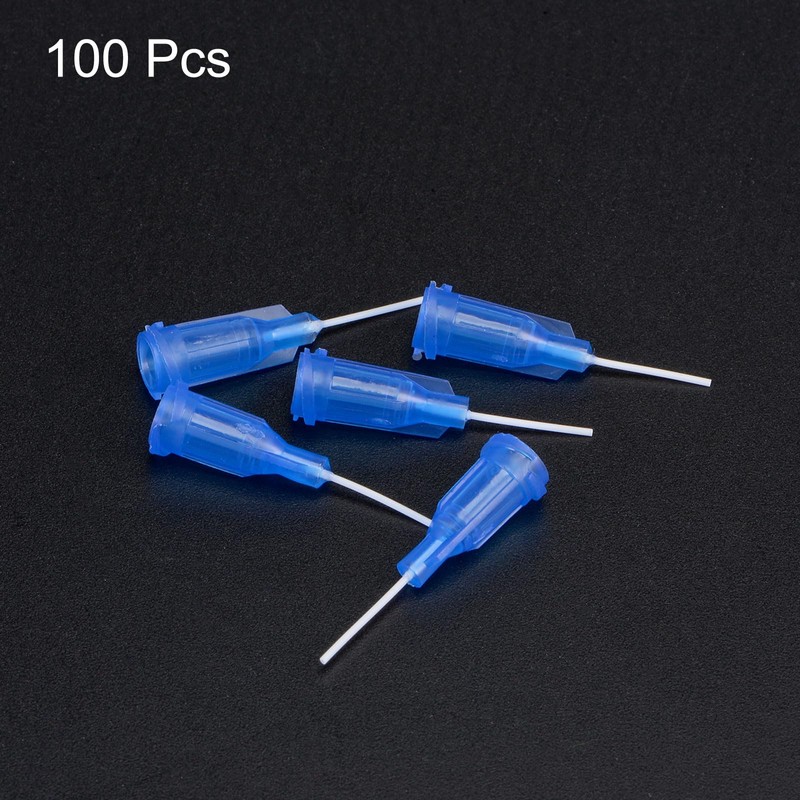 uxcell 100 Pcs 22G Plastic Dispensing Needles with Luer Lock, 1/2" PTFE Needle Tube PP Heat-Resistant Plastic Blunt Tip for Liquid Glue Gun, Blue