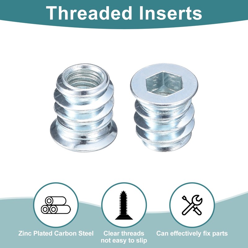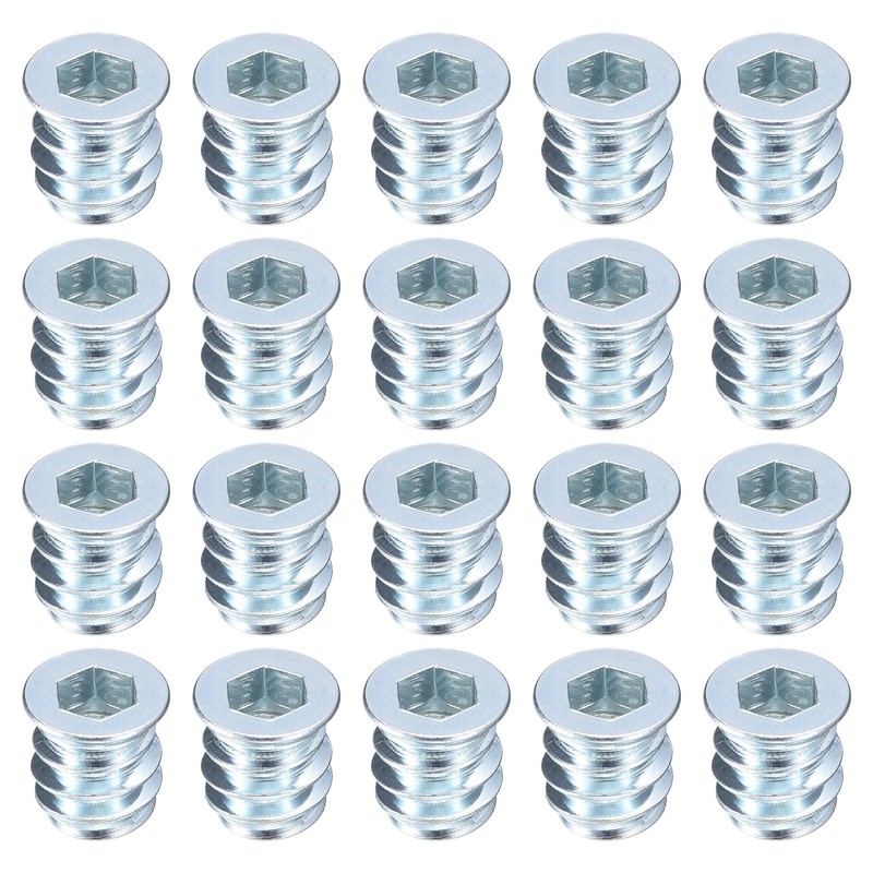 uxcell 100Pcs Threaded Inserts, M6-1x13 Zinc Plated Carbon Steel Hex Socket Drive Screw-in Nut Threaded Inserts for Wood Working Tool and Accessories