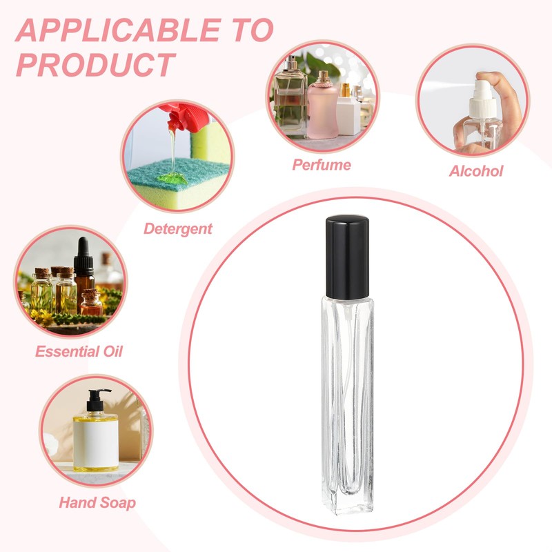 • Wide Application: The mini perfume sample bottle can be used for travel, bathroom, kitchen, and business trips. It is suitable for dispensing essential oils, body mist, perfumes, etc.