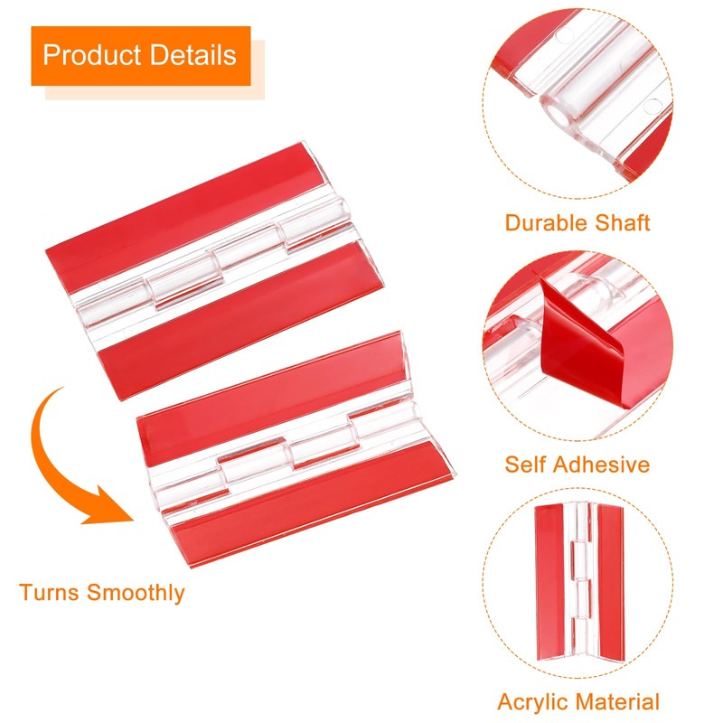 - [Self-Adhesive] - Clear folding hinges have good strong stickiness that is easy to install without glue and not easy to fall off once installed. The acrylic hinge is nearly transparent which can make the installation surfaces tidy and the hinges turn smoothly without jamming, can rotate at 275° which is suitable for daily use.