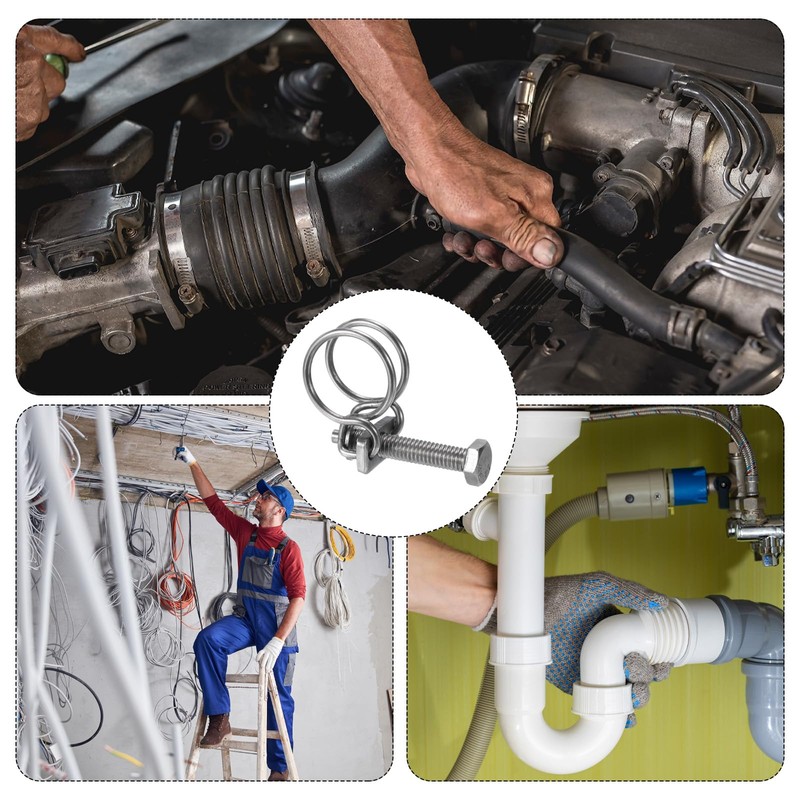 Double wire construction: Compared to single coil hose clamps, double wire hose clamps with bolts provide more uniform and strong clamping force, durable and not easy to deformation or break even after long term use.