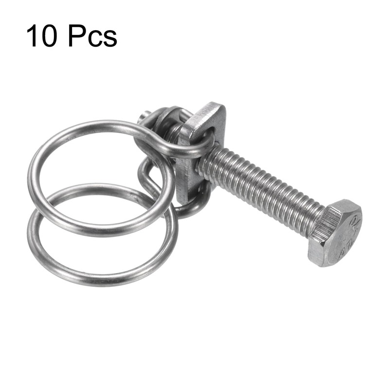 uxcell 10pcs Double Wire Hose Clamp 17-20mm Adjustable Stainless Steel Wire Hose Clips with M6 Bolts for Dust Collection Hose Pump Hose Pipe
