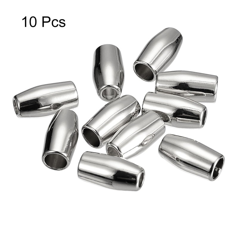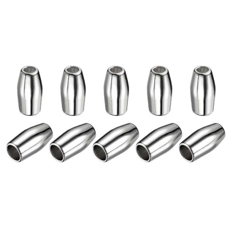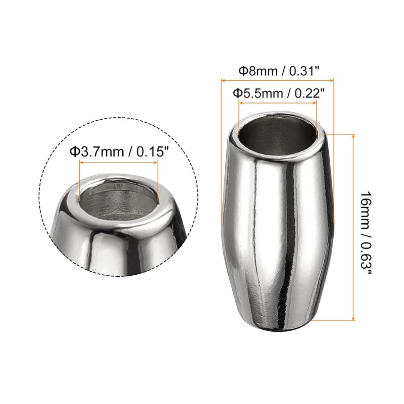 - [Rope Locks Fastener] - The package comes with 10pcs of silver metal bell stopper in 5.5mm/0.22" large hole dia., 3.7mm/0.15" small hole dia. and 8mmx16mm/0.31"x0.63" width and height that can meet your daily needs.