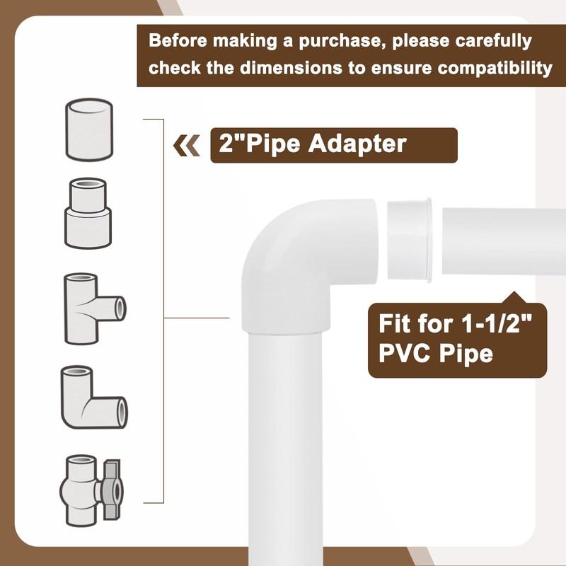 Fits 1-1/2" PVC Pipe and 2" Pipe Adapters