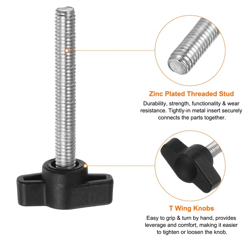 - FEATURES - Metal inserts are mechanically injected at high temperature to ensure a secure connection to each other for easy installation. The tee-wing knob is easy to grip and turn by hand, providing leverage and comfort and facilitates the tightening and loosening of knobs