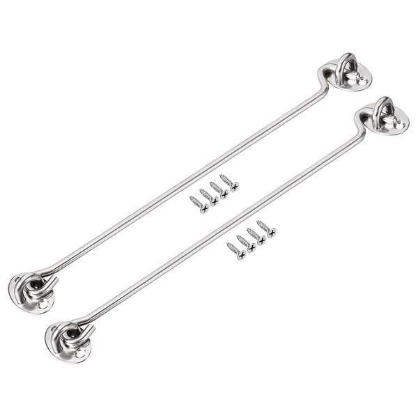 uxcell 14" Cabin Hook Eye Latch Gate Door Swivel Window Hook Stainless Steel with Mounting Screws 2pcs