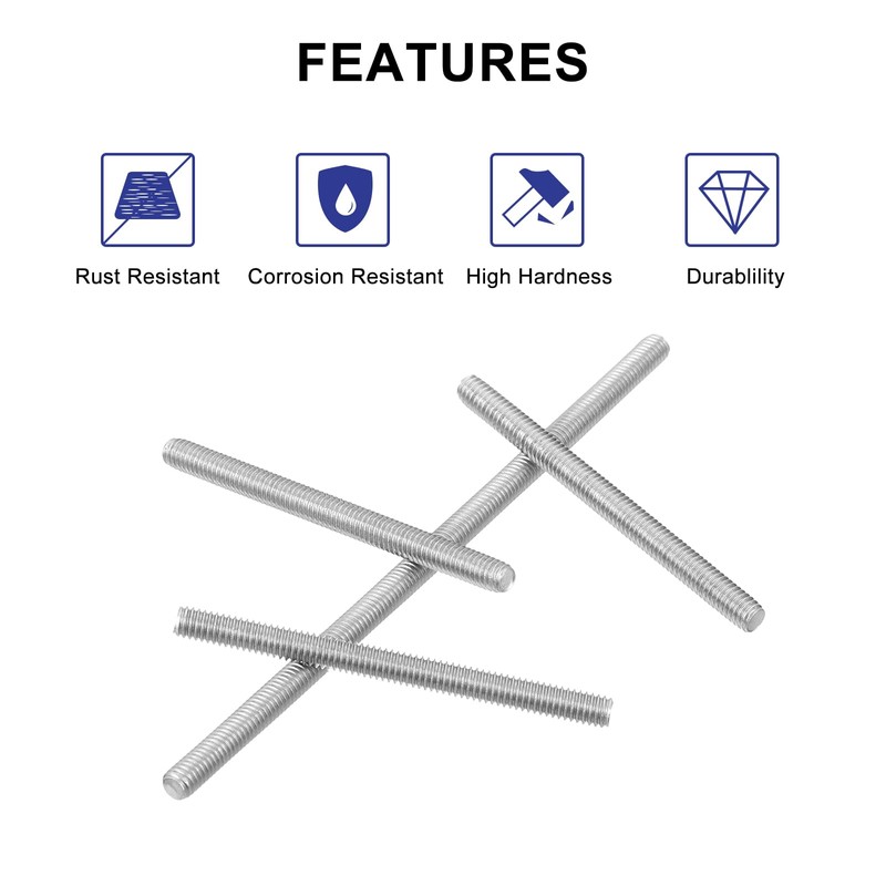 Fully Threaded Design - Neat and clear thread, exquisite workmanship, entire threaded design, allowing for a secure connection on both ends, which makes it great for applications where the rod needs to be fully engaged with nuts or other fasteners.