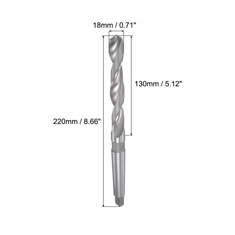 - Specifications: Taper Size: MT2; cutting diameter: 18mm / 0.71-inch; cutting edge length: 130mm / 5.12-inch; overall length: 220mm / 8.66-inch.