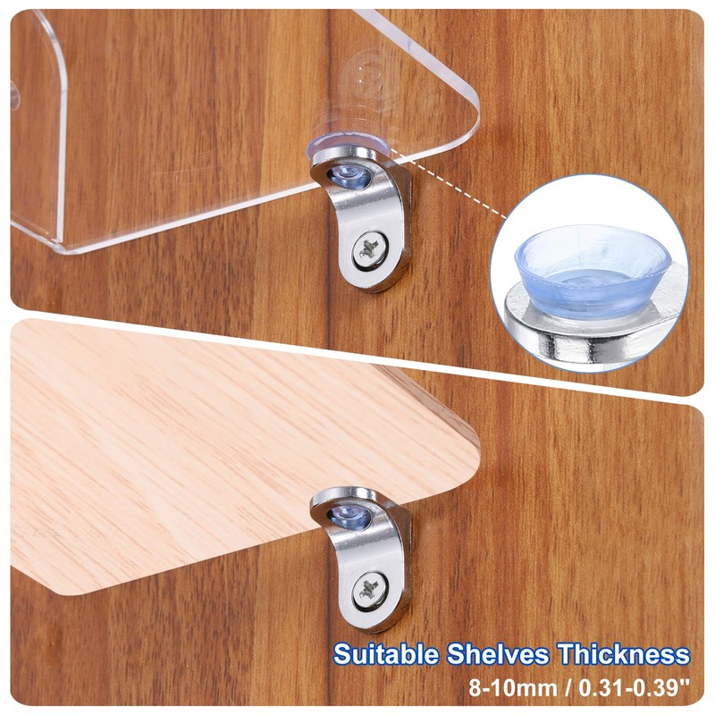 Feature - The silicone suction cup can hold the glass tightly, prevent scratches caused by direct contact between the bracket and the shelf, reduce sliding, and better support the shelf; the bracket has screws, so you can easily adjust the required shelf thickness within the adjustable range as needed