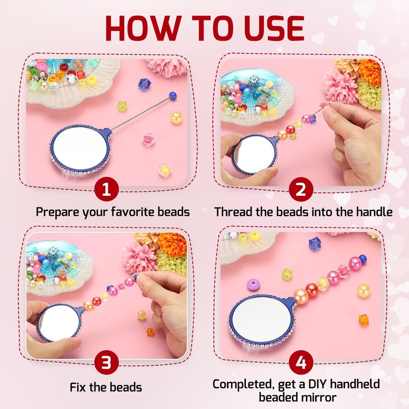 Practical and Thoughtful Gift: This detachable beaded mirror has a unique design. While taking into account practicality, it can create a variety of personalized designs. It is a beautiful and thoughtful gift for handmade enthusiasts or as a gift for family members on Valentine's Day, Christmas, Mother's Day or other important days.